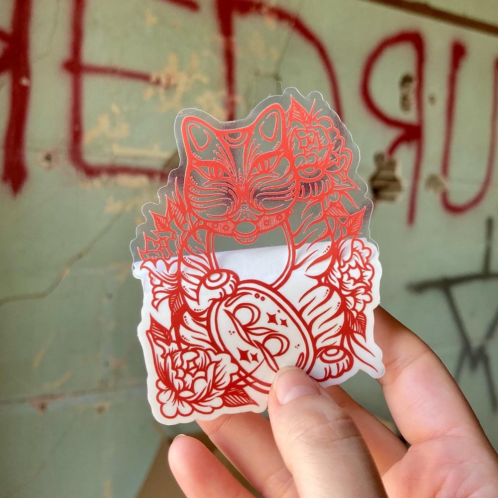 Clear semi-gloss, vinyl die-cut sticker, approx 2.5"x3.5"